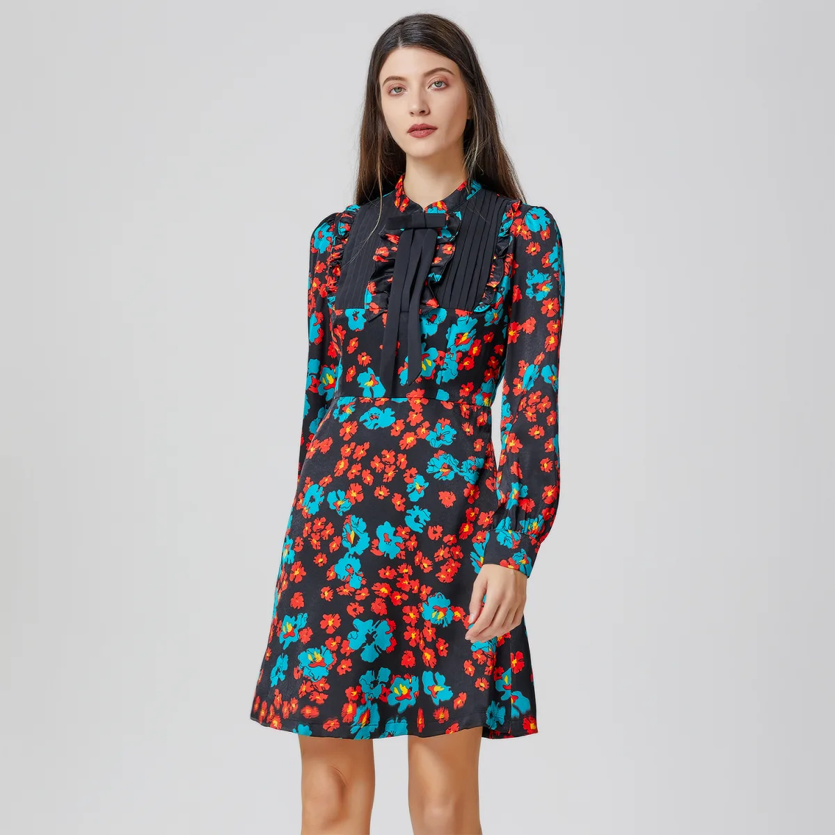 Mini-jurk met Ascot-strik en bloemenprint
