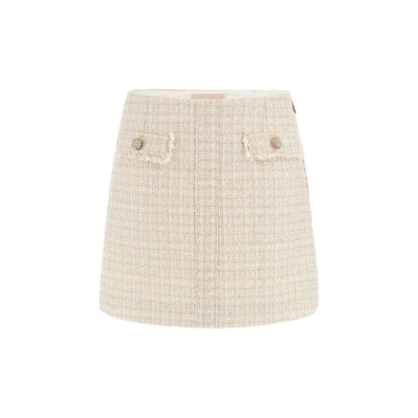 Minirok van Guess;Recht model;Bouclé-look ;Model 'DAPHNEE';Sierknopen;Bandwijdte bij maat XS: 36 cm;Totale lengte bij maat XS: 41 cm