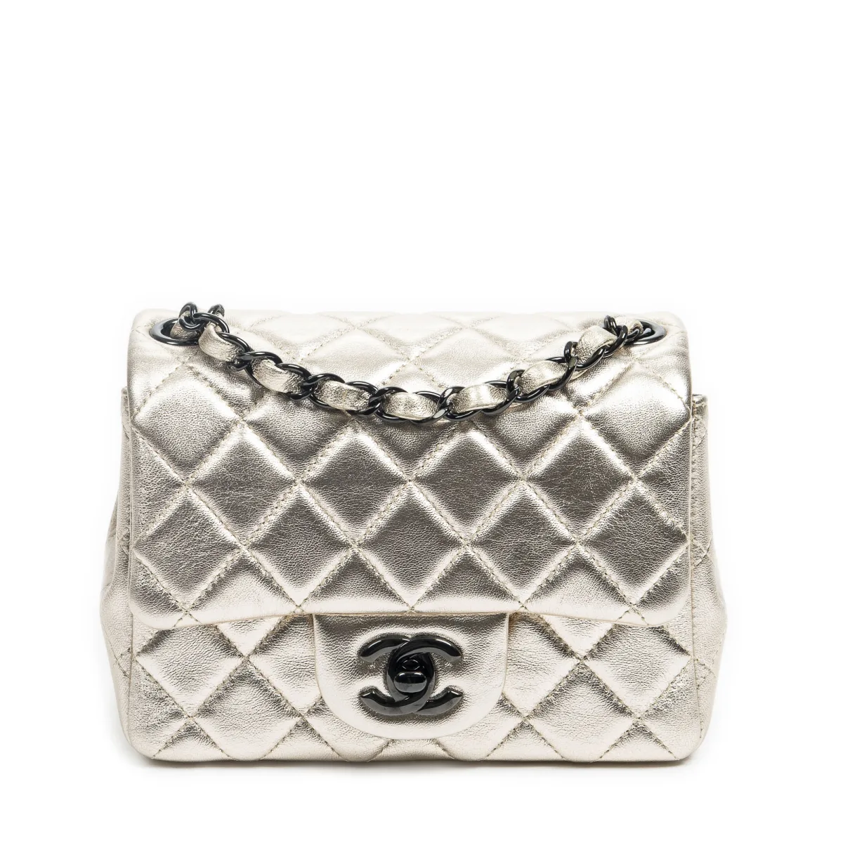 Chanel Tassen Mini Square Flap Schoudertas in de Goud Kalfsleer in de Zilver hardware. Het product is in In Perfecte Staat (AA). Afmetingen: 16.5x12.5x6.5 cm Inclusief accessoires: Sticker; Card; Box Conditie Notes: faint scratches on interior flap BrandCo Paris vindt zeldzame artikelen in de beste staat voor ongelooflijke prijzen. Het is de moeite waard om geduldig te zijn! Koop met vertrouwen: alle artikelen van BrandCo Paris worden zorgvuldig geselecteerd en geverifieerd door ons team van experts. Alle artikelen worden geleverd met een certificaat van echtheid en verpakt door BrandCo Paris. Classificatietabel voor de conditie van het artikel: N (als nieuw) AA (perfecte staat) A (uitstekende staat) AB (zeer goede staat) B (goede/redelijke staat)