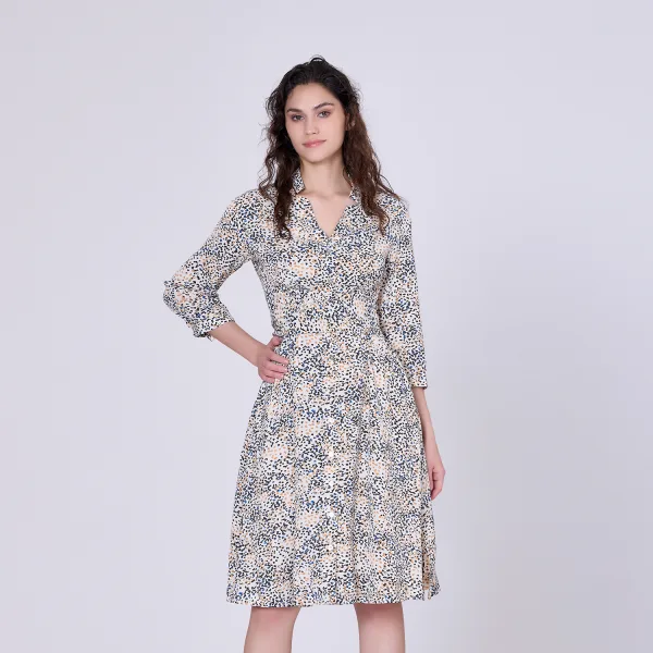 Minimalistische gedrukte theesjurk en 34 mouwen