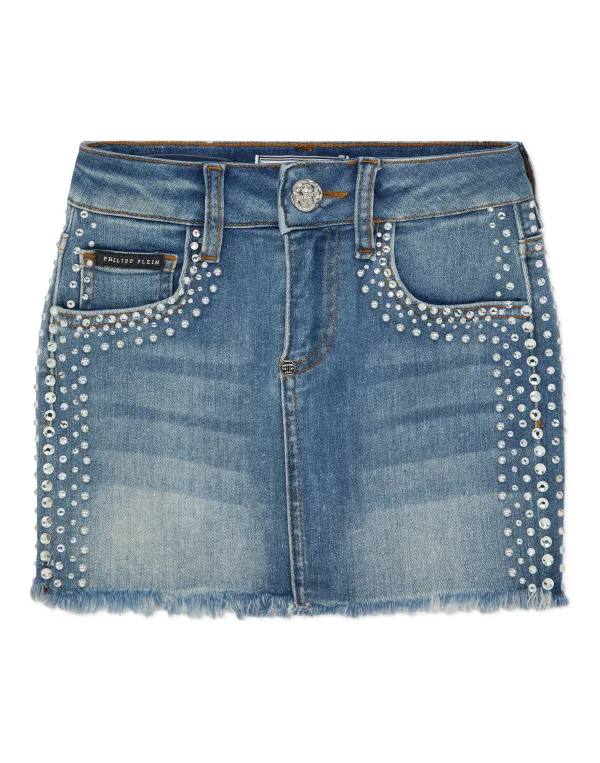Verfraaid Deze speelse minirok heeft een jeugdige uitstraling met een luxe twist, benadrukt door glinsterende strass en geribde details die casual glamour herdefiniëren. Combineer met een cropped jack of oversized T-shirt voor een gedurfde streetwear vibe Strass-versieringen bieden opvallende schittering en kenmerkende flair Geribbelde inzetdetails voegen textuur en een modern silhouet toe Minilengte geeft zelfverzekerde, trendy energie Comfortabele pasvorm met flexibele stretch voor de hele dag bewegingsvrijheid
