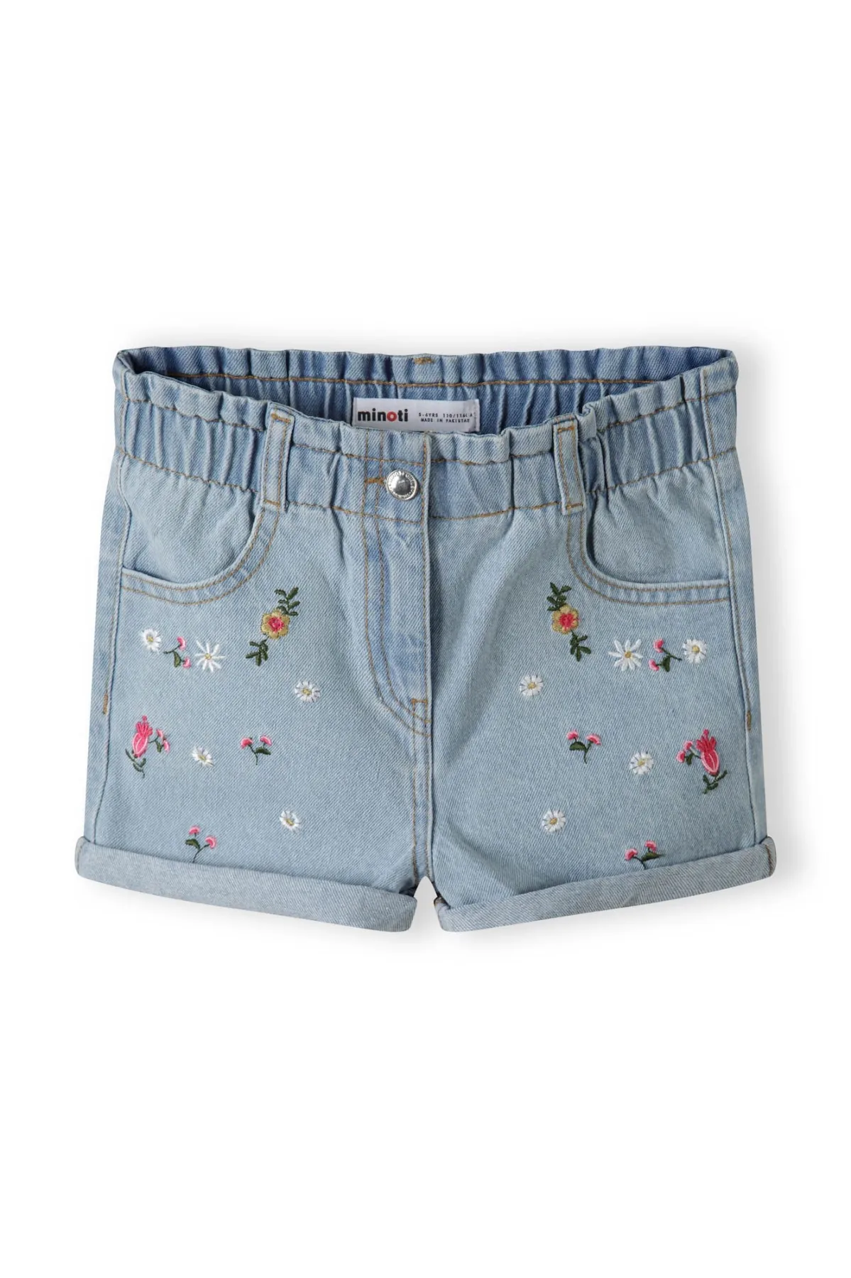 Design: Elastische taille/zoom, Omgeslagen zoom, Achterzak, Zakken aan de zijkant; Type sluiting: Knoopsluiting; Materiaal: Denim; Motief: Bloemenprint; Details: Borduursels; Extra's: Contrasterende naden, Vaste grip; Wassing: Blauw denim; Lengte: Kort/mini; Pasvorm: Regular