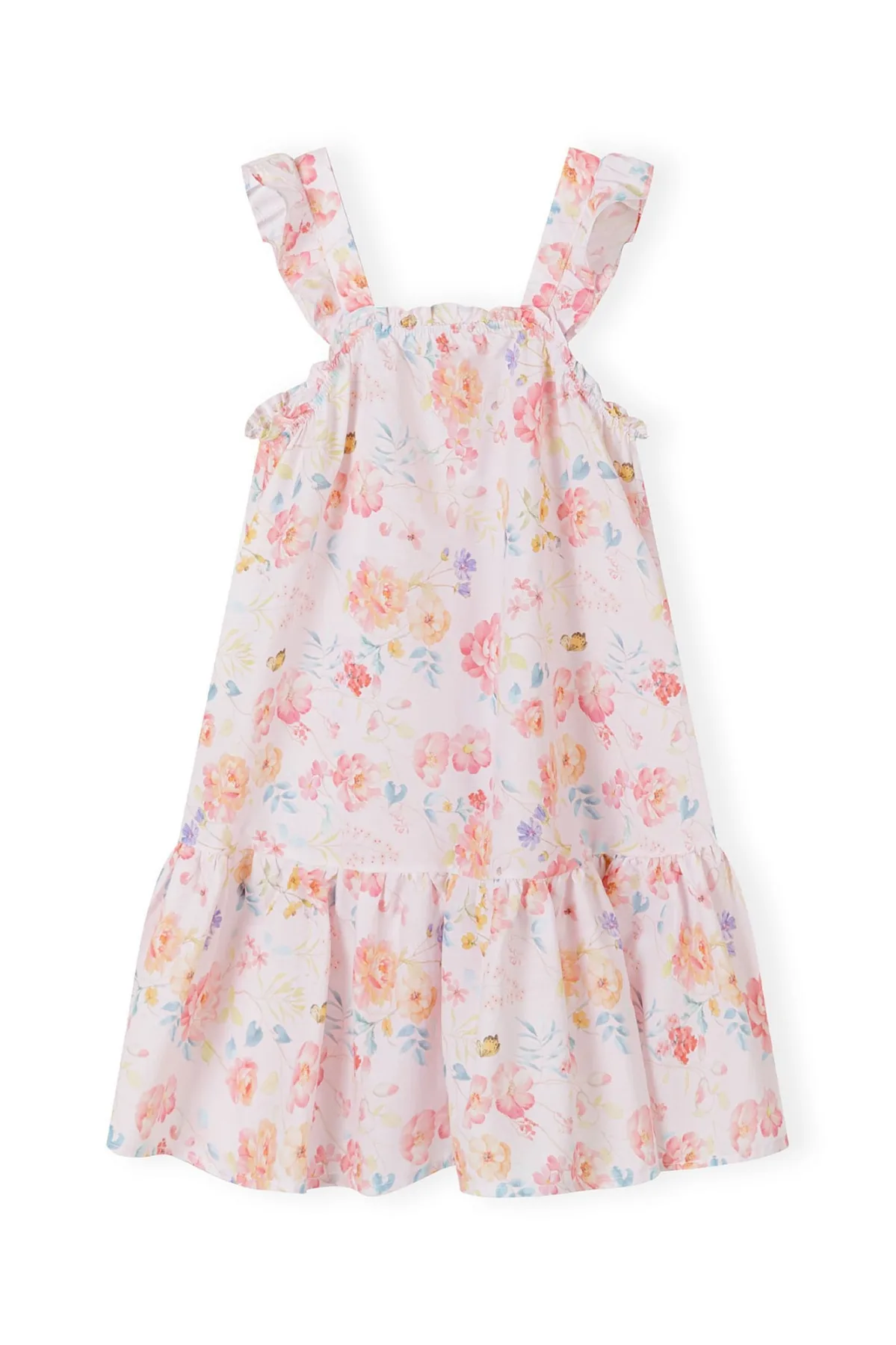 Design: Gevoerde zoom/rand; Materiaal: Katoen; Motief: Bloemenprint; Soort bandjes: Brede bandjes; Details: Volant; Extra's: All-over patroon; Lengte: Knielengte; Pasvorm: Normale pasvorm; Armlengte: Mouwloos