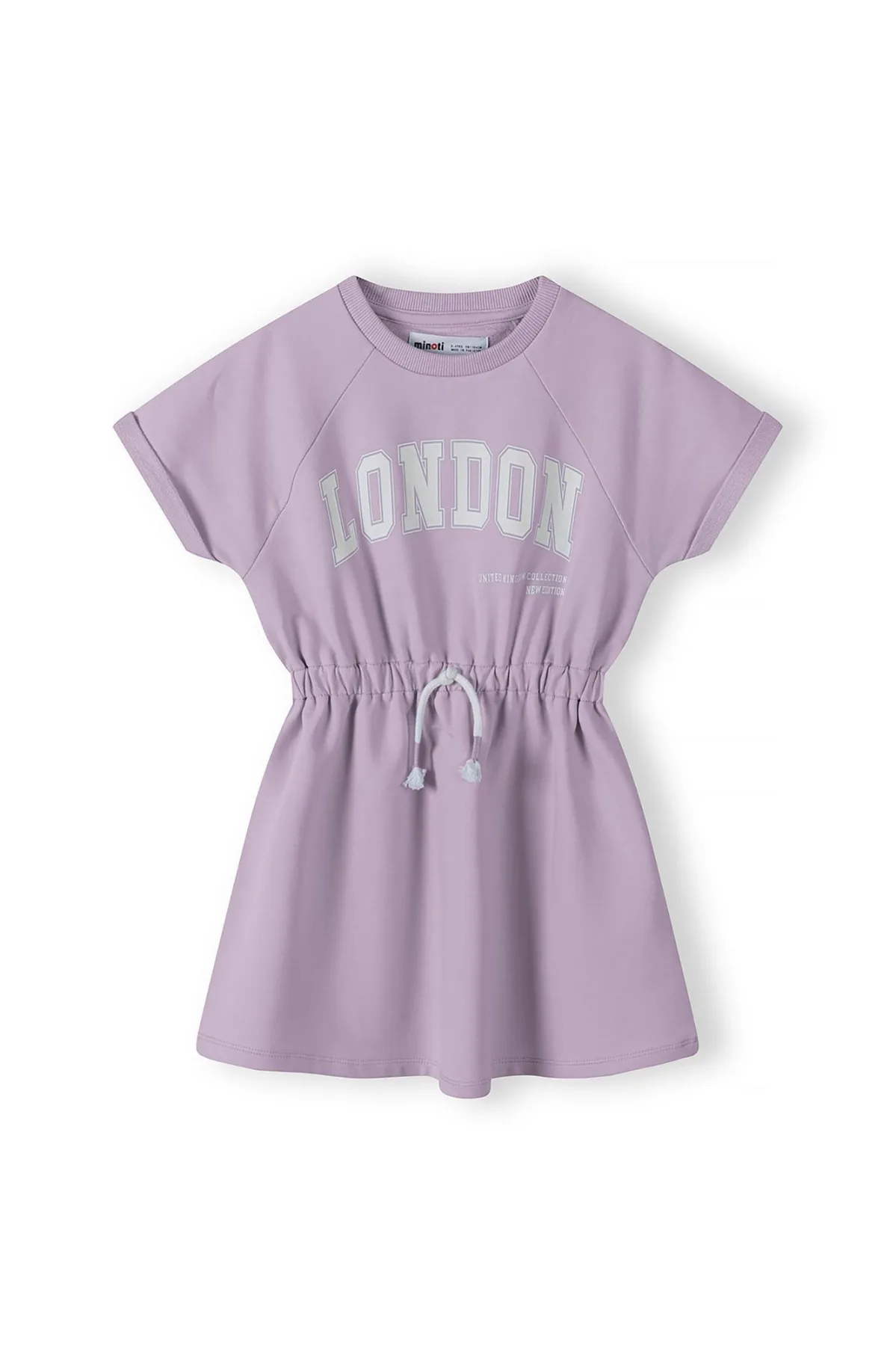 Design: Om te knopen/binden; Materiaal: Sweatstof; Halstype: Ronde hals; Motief: Tekst print; Details: Gedrapeerd; Extra's: Verstelbare taille; Lengte: Kort/mini; Pasvorm: Losse pasvorm; Armlengte: Kwartmouw