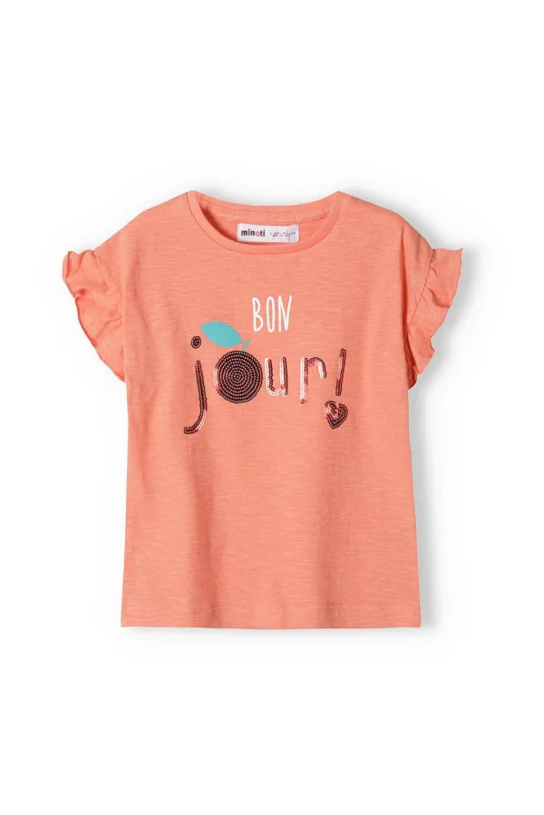 Materiaal: Katoen; Halstype: Ronde hals; Motief: Tekst print; Details: Pailletten, Ruches; Pasvorm: Normale pasvorm; Armlengte: Kwartmouw; Lengte: Normale lengte