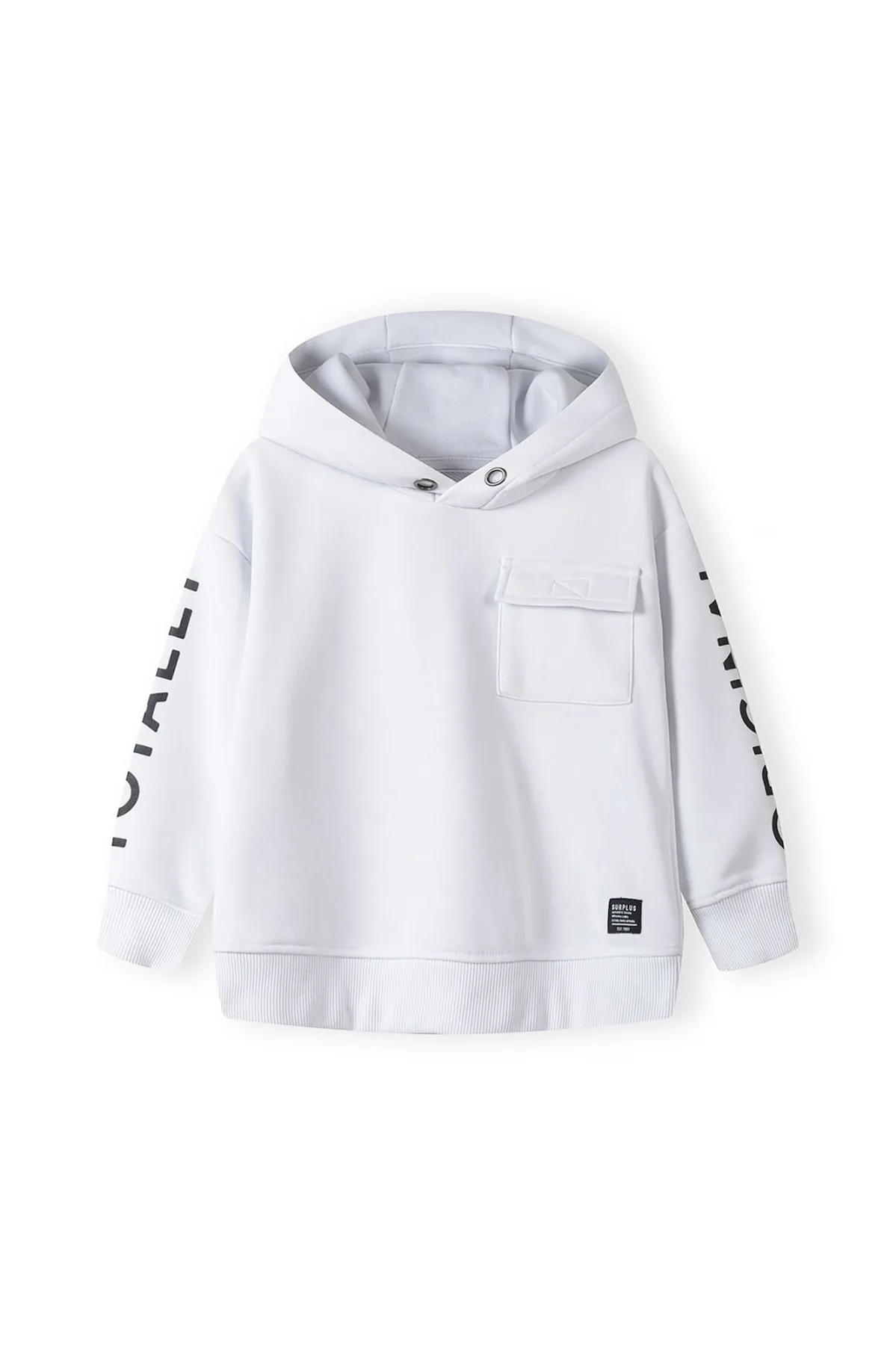 Design: Rechte zoom, Geribd ceintuurtje, Overcut schouder, Borstzak; Materiaal: Sweatstof; Halstype: Capuchon; Motief: Tekst print; Extra's: Label patch/label flag, Op staal naden, Voelt zacht aan; Pasvorm: Normale pasvorm; Armlengte: Lange mouw
