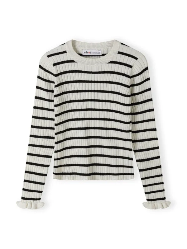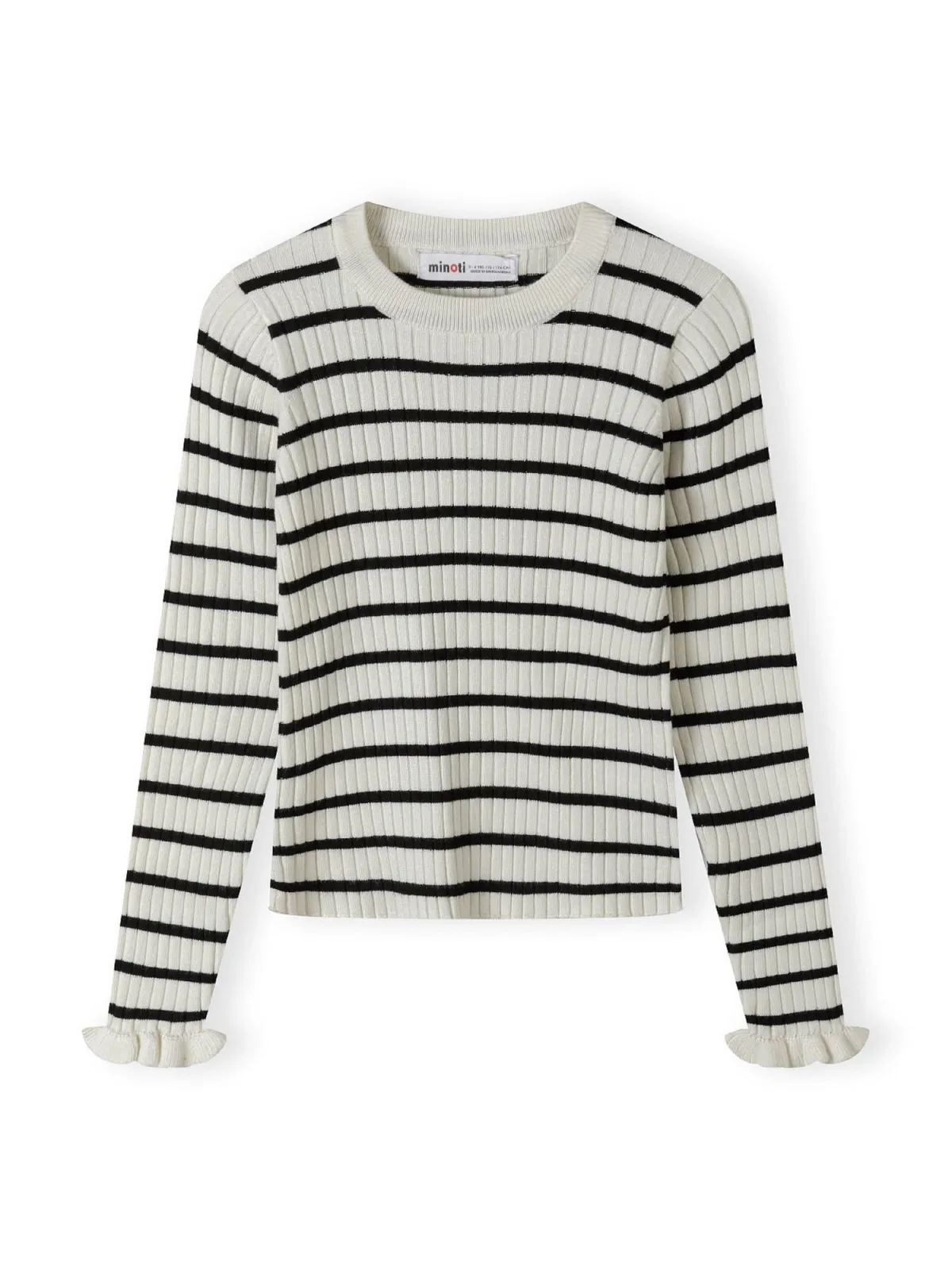 Design: Geribbelde kraag, Rechte zoom; Materiaal: Knitwear; Halstype: Ronde hals; Motief: Gestreept; Details: Ruches; Extra's: All-over patroon, Voelt zacht aan; Pasvorm: Normale pasvorm; Armlengte: Lange mouw; Lengte: Normale lengte