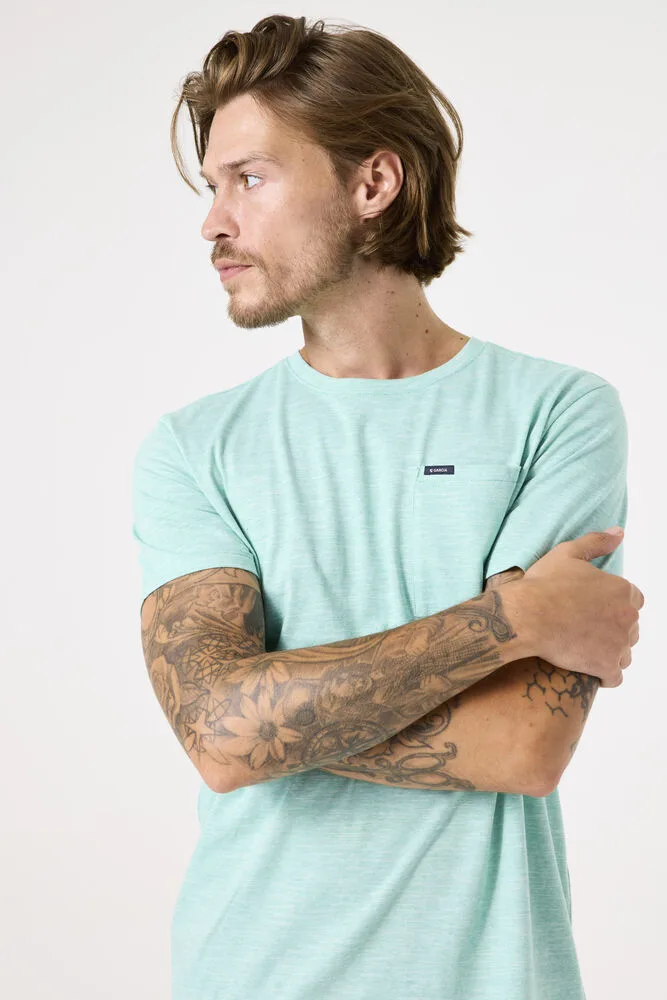 T-shirt met borstzakje. Dit T-shirt is een comfortabel, alledaags item. Het heeft een slim fit en is gemaakt van 100% katoen. Dit GARCIA kledingstuk is gemaakt met gebruik van recyclede garen. Recyclede materialen worden gemaakt uit restmateriaal, wat weer wordt omgezet tot grondstof.
