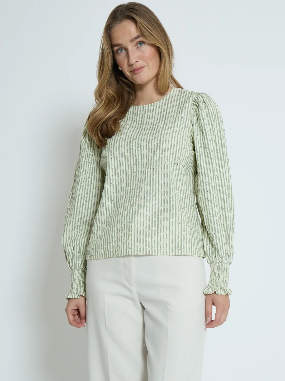 minus Blouse ‘Bessima’ groen / wit Prijzen