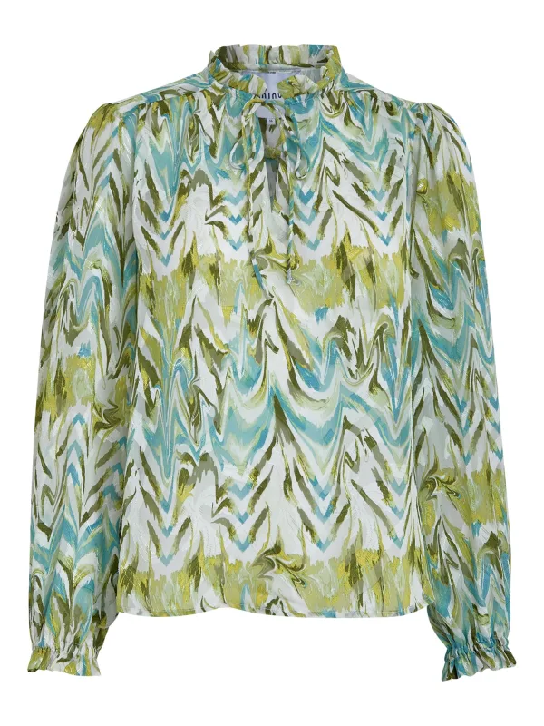 minus Blouse ‘Valmia’ olijfgroen / petrol / donkergroen / wit