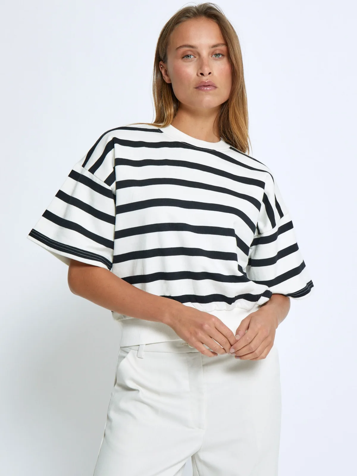 Design: Geribbelde kraag, Overcut schouder; Materiaal: Sweatstof; Halstype: Ronde hals; Motief: Gestreept; Extra's: All-over patroon, Voelt zacht aan, Huidvriendelijk materiaal; Pasvorm: Normale pasvorm; Armlengte: Halve mouw; Lengte: Normale lengte