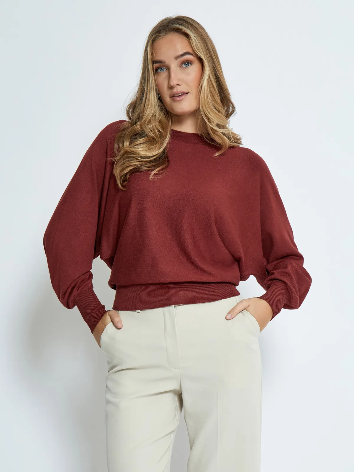 Design: Gesneden mouw; Materiaal: Knitwear; Halstype: Ronde hals; Motief: Effen; Soort bandjes: Normale bandjes; Details: Gedrapeerd; Extra's: Fully fashioned; Pasvorm: Losse pasvorm; Armlengte: Lange mouw; Lengte: Normale lengte