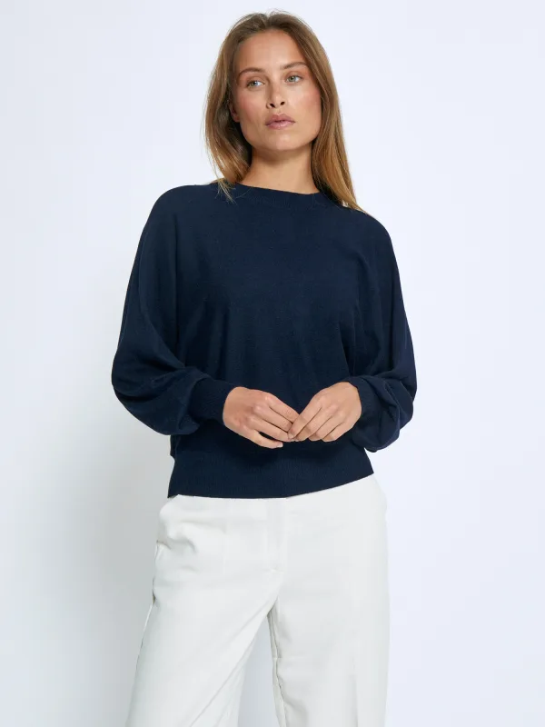Design: Vleermuismouwen; Materiaal: Knitwear; Halstype: Ronde hals; Motief: Effen; Soort bandjes: Normale bandjes; Details: Gedrapeerd; Extra's: Fully fashioned; Pasvorm: Losse pasvorm; Armlengte: Lange mouw; Lengte: Normale lengte