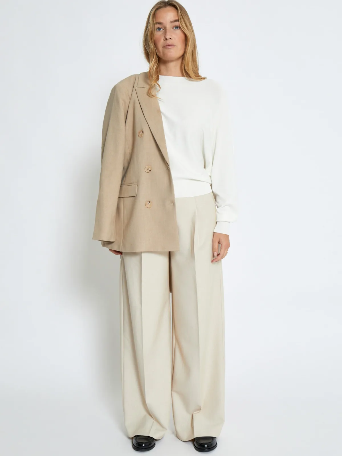 Design: Geribd ceintuurtje; Materiaal: Knitwear; Halstype: Ronde hals; Motief: Effen; Soort bandjes: Normale bandjes; Details: Gedrapeerd; Extra's: Fully fashioned; Pasvorm: Losse pasvorm; Armlengte: Lange mouw; Lengte: Normale lengte