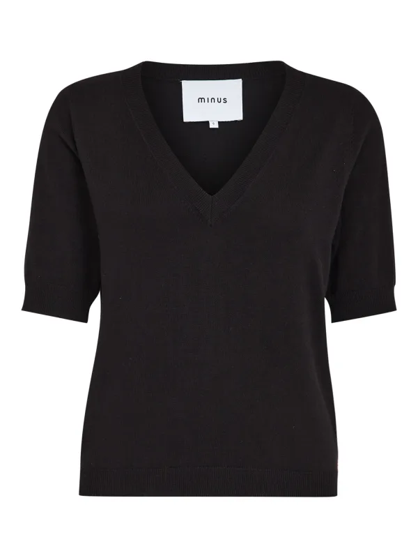 Design: Geribd ceintuurtje; Materiaal: Knitwear; Halstype: V-hals; Motief: Effen; Extra's: Fully fashioned; Pasvorm: Normale pasvorm; Armlengte: Halve mouw; Lengte: Korte pasvorm