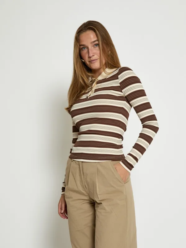 minus Top ‘Pammie’ crème / chocoladebruin Prijzen