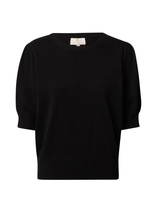 Design: Geribbelde kraag, Recht model, Geribd ceintuurtje; Materiaal: Knitwear; Halstype: Ronde hals; Motief: Effen; Soort bandjes: Normale bandjes; Details: Gedrapeerd; Extra's: Met textuur, Voelt zacht aan; Pasvorm: Normale pasvorm; Armlengte: Halve mouw; Lengte: Normale lengte