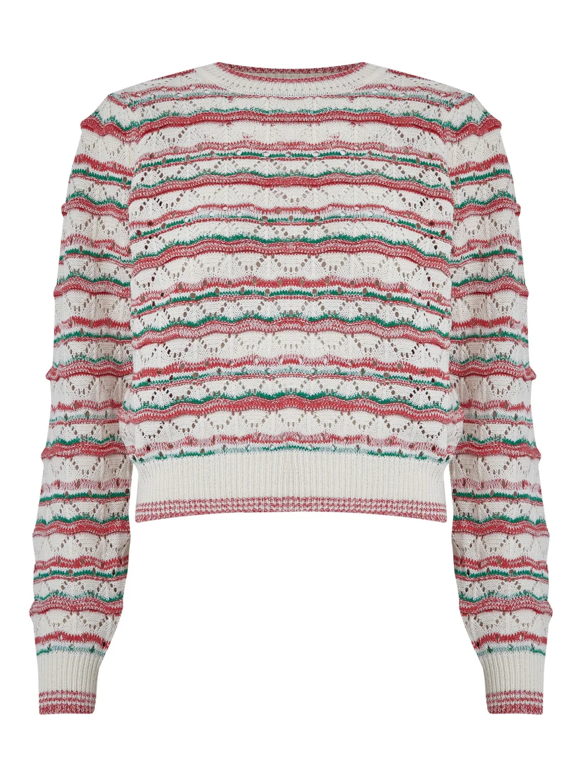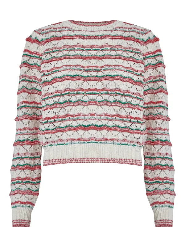 minus Trui ‘Kalima’ lichtbeige / groen / framboos