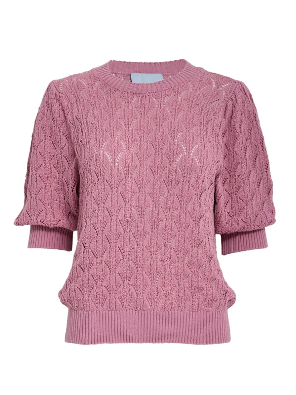 Design: Geribd ceintuurtje; Materiaal: Knitwear; Halstype: Ronde hals; Motief: Effen; Details: Mesh; Extra's: Visnet brei; Pasvorm: Normale pasvorm; Armlengte: Halve mouw; Lengte: Normale lengte