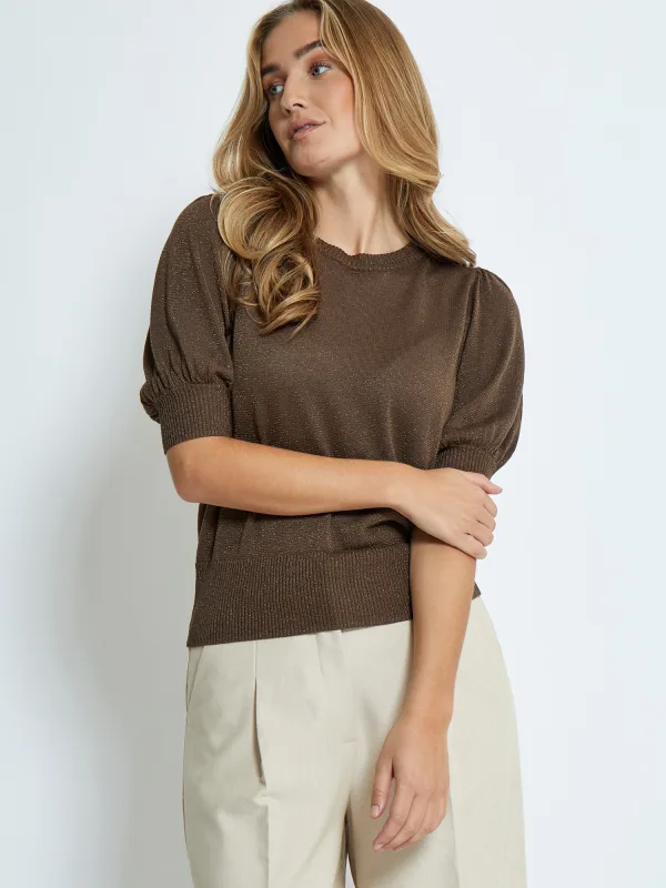 Design: Geribbelde kraag; Materiaal: Knitwear; Halstype: Ronde hals; Motief: Effen; Soort bandjes: Normale bandjes; Details: Gedrapeerd; Extra's: Met textuur; Pasvorm: Normale pasvorm; Armlengte: Halve mouw; Lengte: Normale lengte