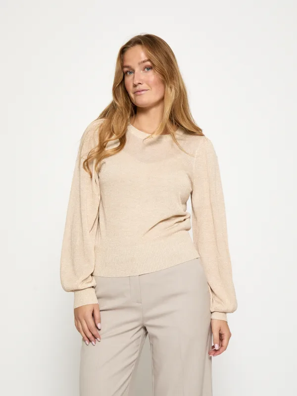 Design: Pofmouwen, Geribd ceintuurtje; Materiaal: Knitwear; Halstype: Ronde hals; Motief: Effen; Soort bandjes: Normale bandjes; Extra's: Glinsterend; Pasvorm: Normale pasvorm; Armlengte: Lange mouw; Lengte: Normale lengte