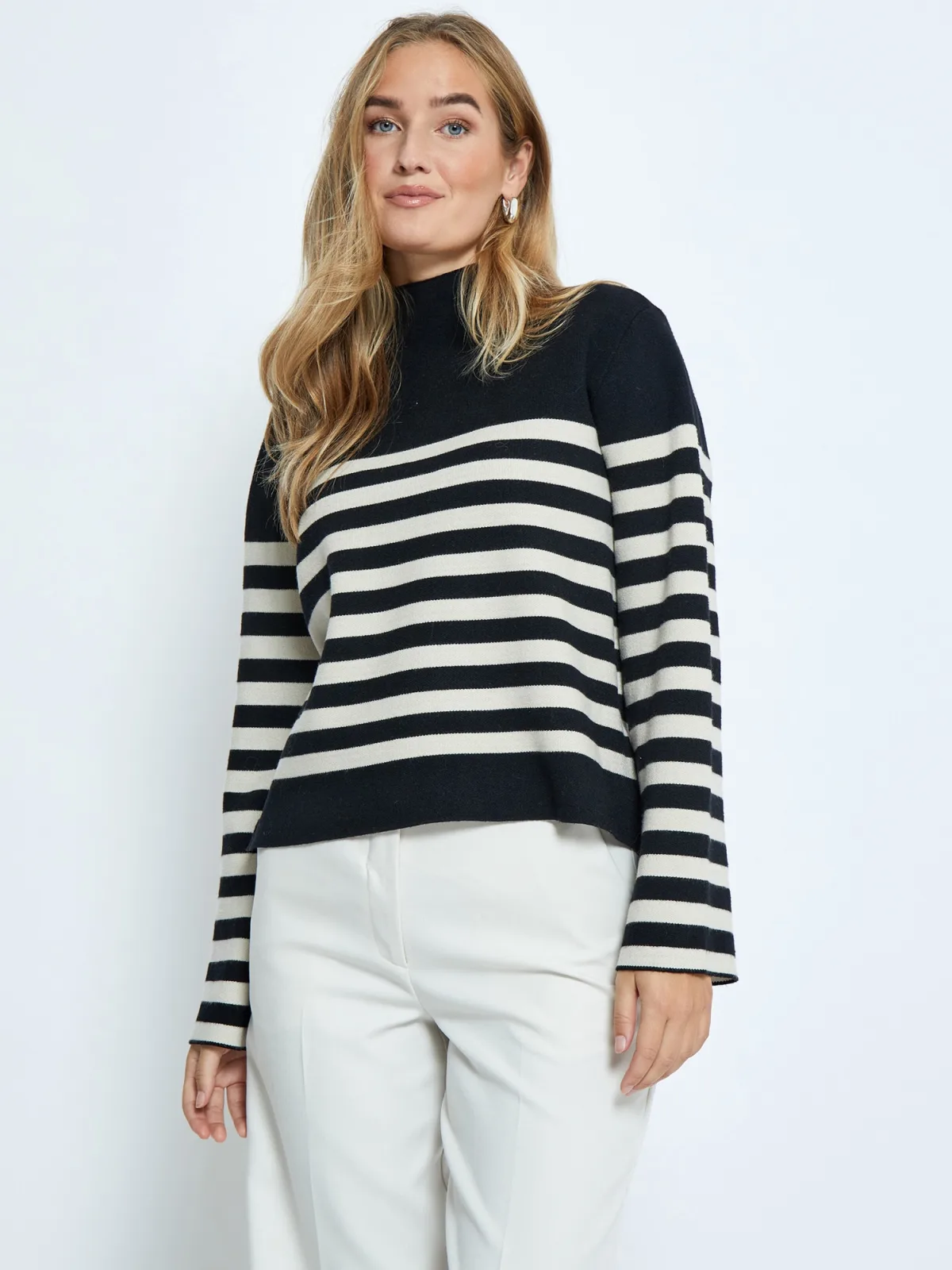 Design: Geribbelde kraag; Materiaal: Knitwear; Halstype: Opstaande kraag; Motief: Gestreept; Extra's: All-over patroon; Pasvorm: Losse pasvorm; Armlengte: Lange mouw; Lengte: Normale lengte