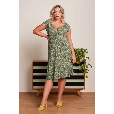 Verliefd met een hoofdletter V! Want Mira is voorzien van een prachtige V-hals met vaste overslag maar is ook op de rug uitgesneden in een lage V. Daarnaast is ze uitgevoerd in een soepele, slinky en stretchy stofmix met een schattige all-over retro grafische print. * Zwierige stijl * Vaste overslag * Korte kapmouwtjes * Afneembare matching striklint, voor een extra 'snatched' taille * Géén ritssluiting of knopen; aantrekken en ready to go! * Valt bij een lengte van 1,70 m boven de knie