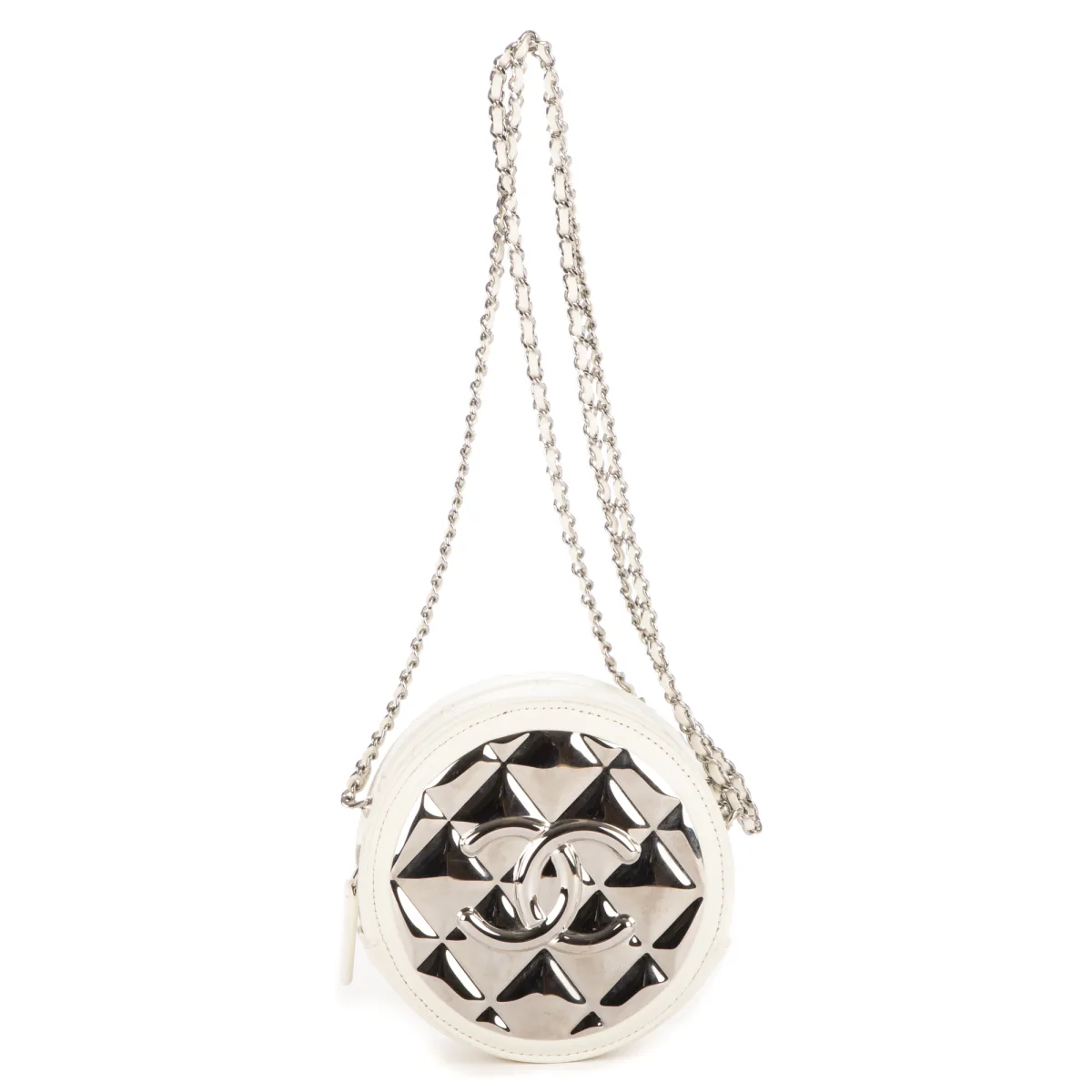 Chanel Tassen Mirror Round Chain Crossbody Mini Schoudertas in de Wit/Zilver Kalfsleer in de Zilver hardware. Het product is in In Uitstekende Staat (A). Afmetingen: 12x12x5 cm Inclusief accessoires: Sticker; Card; Dustbag; Box BrandCo Paris vindt zeldzame artikelen in de beste staat voor ongelooflijke prijzen. Het is de moeite waard om geduldig te zijn! Koop met vertrouwen: alle artikelen van BrandCo Paris worden zorgvuldig geselecteerd en geverifieerd door ons team van experts. Alle artikelen worden geleverd met een certificaat van echtheid en verpakt door BrandCo Paris. Classificatietabel voor de conditie van het artikel: N (als nieuw) AA (perfecte staat) A (uitstekende staat) AB (zeer goede staat) B (goede/redelijke staat)