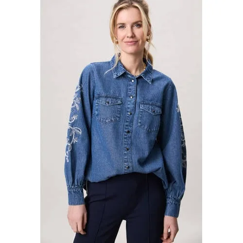 Miss Etam gebloemde blouse dark blue denim Prijzen