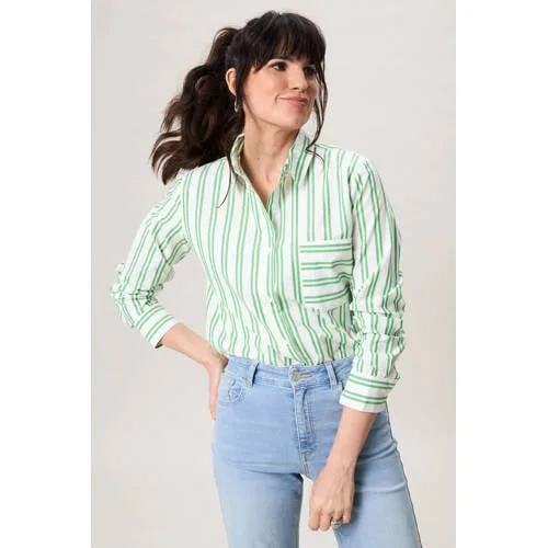 De Miss Etam Celina classy blouse is een fijne basis voor dagen waarop je er verzorgd uit wilt zien zonder lang na te denken over je outfit. De blouse heeft een klassieke kraag en lange, rechte mouwen en valt mooi langs het lichaam. De speelse combinatie van strepen en hartjes geeft het tijdloze model een frisse, moderne uitstraling. Gemaakt van katoen en een soepele stof voelt de blouse prettig aan en blijft de stof netjes in model.Details die je elke dag kunt dragen Streepprint met subtiele hartjes voor een speels, vrouwelijk accent Lange rechte mouwen voor een rustige, elegante look Klassieke kraag die zowel open als gesloten mooi valt Knoopsluiting aan de voorzijde voor makkelijk aan- en uittrekken Gemaakt van katoen en een gladde, vormvaste stof voor fijn draagcomfort Zonder borstzakken voor een strakke en rustige voorzijdeVan werkdag tot weekendmomentDeze blouse past goed bij veel momenten in je week. Combineer met een nette pantalon voor op kantoor of draag de blouse op een jeans voor een relaxte dag. De print maakt je outfit direct af, ook als je verder alles eenvoudig houdt.Miss Etam, vertrouwd en vrouwelijkMiss Etam ontwerpt kleding die aansluit bij het dagelijks leven, met oog voor pasvorm en details. De collectie is gemaakt om vaak te dragen en makkelijk te combineren, zodat je met weinig moeite een verzorgde look creëert.Een blouse die je garderobe net wat vrolijker maakt en die je het hele jaar door erbij pakt.