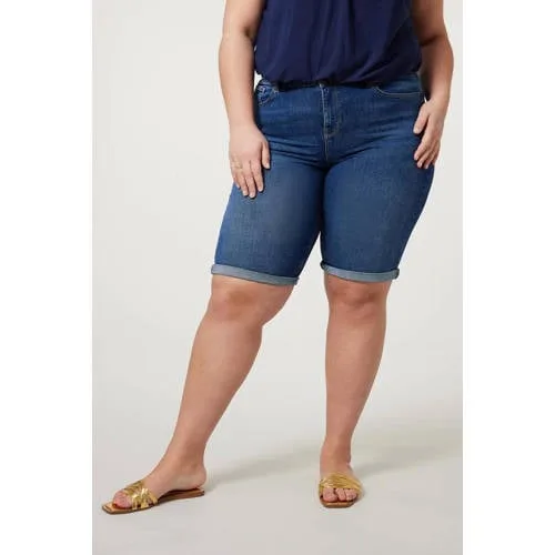 Miss Etam Plus high waist slim fit short medium blue denim Prijzen