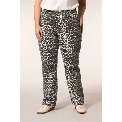 Miss Etam Plus straight leg jeans met panterprint bruin
