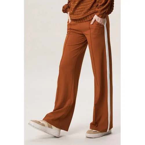 Deze Miss Etam Mia tape trouser is een comfortabele basisbroek met een moderne uitstraling. De broek heeft een straight fit die recht langs het been valt en daardoor rustig oogt. De hoge taille met elastische tailleband sluit prettig aan rond je middel en zorgt dat de broek goed blijft zitten. De effen kleur maakt het eenvoudig om de broek te combineren met verschillende tops, van een T shirt tot een blouse. De subtiele piping langs de zijkant geeft net wat meer detail zonder te overheersen.Verfijnde details voor elke dag Straight fit voor een rechte, ontspannen look Hoge taille voor extra comfort en een aansluitende pasvorm Elastische tailleband voor makkelijk aan en uit trekken Effen kleur die goed te combineren is met diverse stijlen Piping langs de zijkant voor een verzorgd lijnenspel Zijzakken voor het bewaren van kleine essentials Gemaakt van polyester dat vormvast blijft Lange pijpen die het been volledig bedekkenCasual look met veelzijdige stylingmomentenMet deze casual broek ga je soepel van een ontspannen dag thuis naar een dag op kantoor. Combineer de lange pijpen met sneakers voor een sportieve uitstraling of met nette schoenen voor een meer geklede look.De vertrouwde stijl van Miss EtamMiss Etam richt zich op draagbare mode met een duidelijke pasvorm en herkenbare stijlnamen. De ontwerpen zijn gemaakt met aandacht voor dagelijks comfort en een nette afwerking, zodat je eenvoudig een complete outfit samenstelt.Een stijlvolle basisbroek die je garderobe rustig en overzichtelijk aanvult.