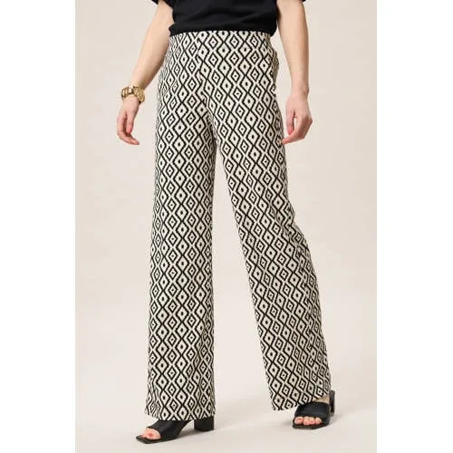 Met de wide leg broek voor dames Pia van Miss Etam voeg je een luchtig en vrouwelijk item toe aan je garderobe. De wijde pijpen vallen soepel langs je benen en de all over print geeft direct een frisse, modische uitstraling. Door de hoge taille met elastische band voelt de broek comfortabel aan en blijft alles netjes op zijn plek, ideaal voor drukke dagen of relaxte momenten.Comfortabele pasvorm en stijlvolle details Wide leg model, waardoor de pijpen losjes en elegant om je benen vallen Hoge taille met elastische tailleband voor een aangesloten maar soepele fit All over print die de broek een opvallende, vrouwelijke look geeft Voorzien van zakken voor, handig voor kleine essentials Gemaakt van een zachte, soepele stof met 2% elastane voor lichte stretch Onderdeel van de Feminine collectie, passend bij het nieuwe lenteseizoenVeelzijdig te stylen in jouw dagelijkse levenDeze Pia broek is een fijne basis voor uiteenlopende outfits. Combineer met een eenvoudige top of T-shirt voor een rustige look, of kies een blouse in een van de kleuren van de print voor een meer aangeklede set. Sneakers, sandalen of hakken, met deze wide leg broek kan het allemaal.Miss Etam als vertrouwde keuzeMiss Etam is al jaren een bekend merk in de Nederlandse damesmode. De collecties worden ontworpen met aandacht voor draagbaarheid, pasvorm en een eigentijdse stijl. Zo kun je rekenen op modieuze items die je makkelijk combineert met de rest van je kledingkast.Een stijlvolle broek die je in het voorjaar en daarbuiten vaak uit de kast pakt.