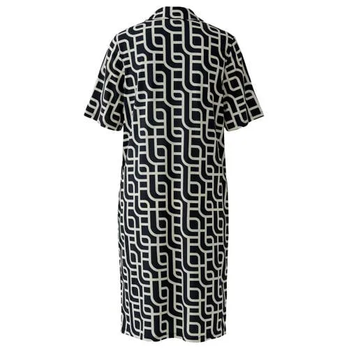 Deze Miss Lagotte midi jurk in zwart en ecru is een allround jurk voor elke dag. De all over print valt direct op, terwijl de middelhoge lengte en driekwartmouwen zorgen voor een toegankelijke en comfortabele look. De rechte mouwen en V-hals maken de jurk geschikt voor zowel werk, lunchafspraken als een etentje.Details die het verschil maken Middellange midi jurk die rond de knie valt, passend voor dagelijks gebruik Zwart/ecru all over print met een rustig dessin V-hals die het decolleté subtiel accentueert Driekwart rechte mouwen voor extra bewegingsvrijheid Zonder sluiting, de jurk trek je eenvoudig over je hoofd aan Gemaakt van polyester, een materiaal dat lang mooi in vorm blijft Geen zakken voor een glad silhouet zonder extra volume aan de zijkantVan kantoor tot weekendDeze midi jurk sluit gemakkelijk aan op jouw dag. Het model leent zich goed voor kantoor, maar ook voor informele momenten in het weekend. De print in zwart en ecru laat zich eenvoudig combineren met verschillende schoenen, tassen en sieraden.Miss Lagotte, stijl voor elke dagMiss Lagotte ontwerpt kleding die goed aansluit op het dagelijks leven, met aandacht voor pasvorm en draaggemak. De collecties volgen de trends, maar blijven tegelijkertijd toegankelijk en eenvoudig te combineren met wat je al in de kast hebt. Zo maak je met één jurk steeds weer een andere outfit.Een veelzijdige jurk waarop je het hele seizoen kunt terugvallen.