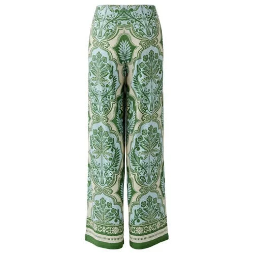 Breng kleur in je garderobe met deze dames broek met wide leg van Miss Lagotte. De all over print in groen, blauw en beige geeft direct een frisse en moderne uitstraling. Door de wijde pijpen valt de broek soepel langs je benen en ontstaat een luchtige look die goed past bij het voorjaar.Details die het verschil maken Wijde pijpen (wide leg) voor een relaxed en eigentijds silhouet Regular waist die comfortabel rond je middel zit Instapmodel zonder sluiting voor snel en makkelijk aankleden Soepel vallende stof met 8% elastaan voor extra bewegingsvrijheid All over print in groen, blauw en beige voor een harmonieuze kleurcombinatie Lange lengte, passend bij sneakers, sandalen of hakkenStyling voor elke lentedagDeze Miss Lagotte broek uit de Boutique collectie is een praktische basis voor lentedagen. Combineer met een eenvoudige top in één van de kleuren uit de print voor een rustig geheel. Met een T-shirt en sneakers ontstaat een casual look, met een blouse en hakken is de broek geschikt voor een etentje of werkdag.Miss Lagotte stijlMiss Lagotte richt zich op items met een vrouwelijke uitstraling en een herkenbare signatuur. Met aandacht voor kleur en print biedt het merk kleding die je gemakkelijk combineert met wat al in je kast hangt.Een kleurrijke keuze als je zoekt naar comfort en een broek met opvallende print in één.