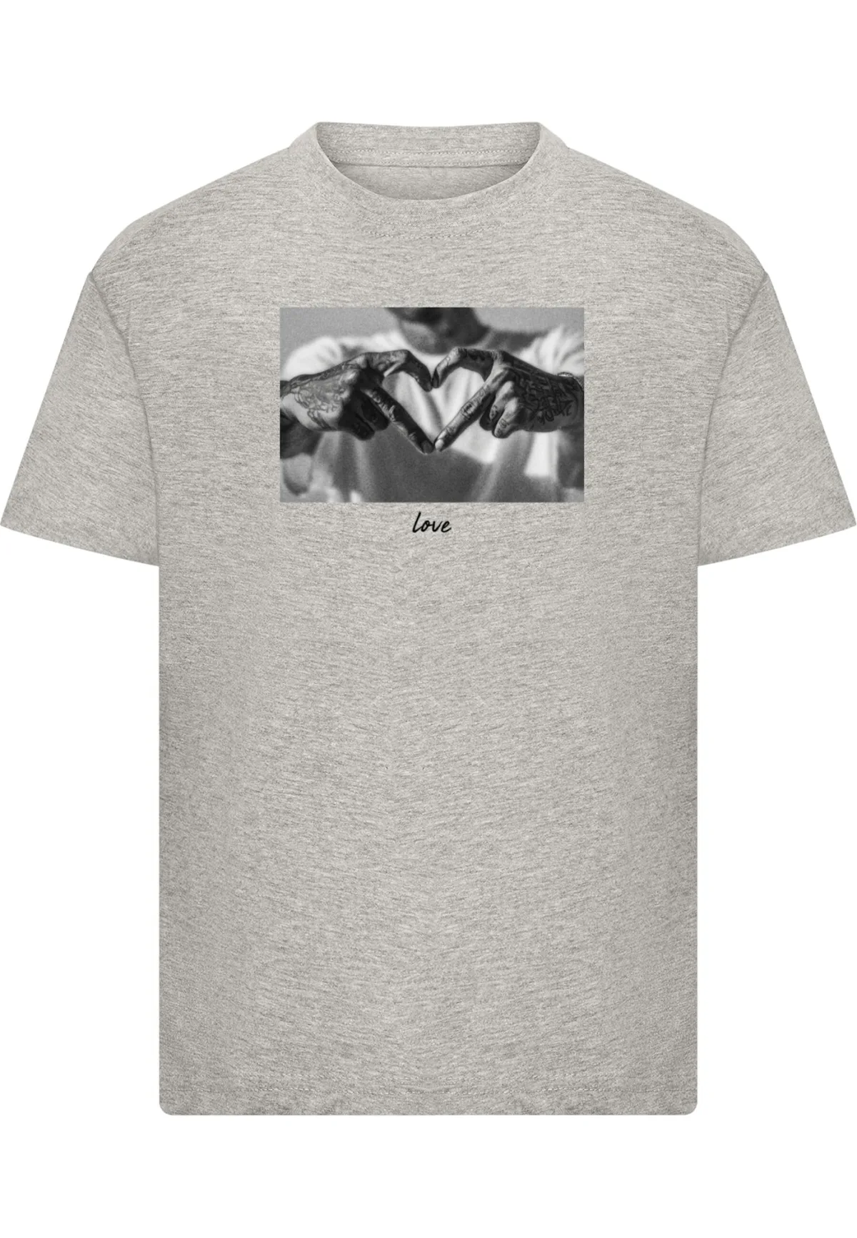 Specificaties: Mister Tee Shirt ‘Heart Sign’ grijs gemêleerd / zwart / wit