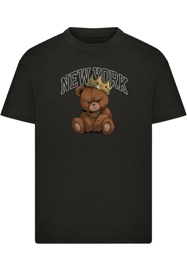 Specificaties: Mister Tee Shirt ‘NY Crowned Bear’ ombergrijs / donkerbruin / zwart / wit