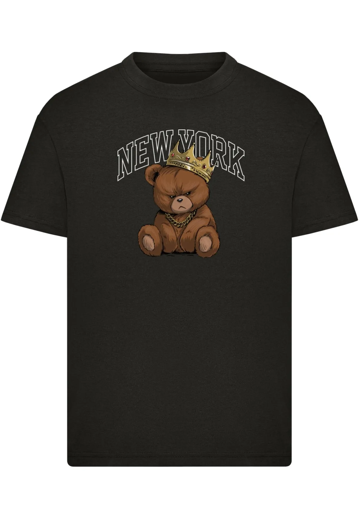 Mister Tee Shirt ‘NY Crowned Bear’ ombergrijs / donkerbruin / zwart / wit