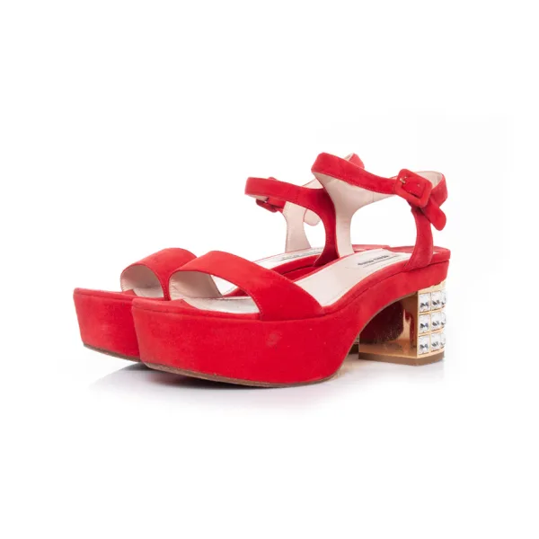 - Bij secretsales.nl kun je Miu Miu Kristallen versierde plateau sandalen kopen voor slechts €404,00
