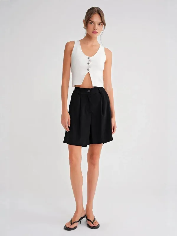 Design: Ritssluiting; Type sluiting: Ritssluiting; Motief: Effen; Details: Plooien; Extra's: Riemlussen; Lengte: Kort/mini; Pasvorm: Loosefit; Taillehoogte: High waist