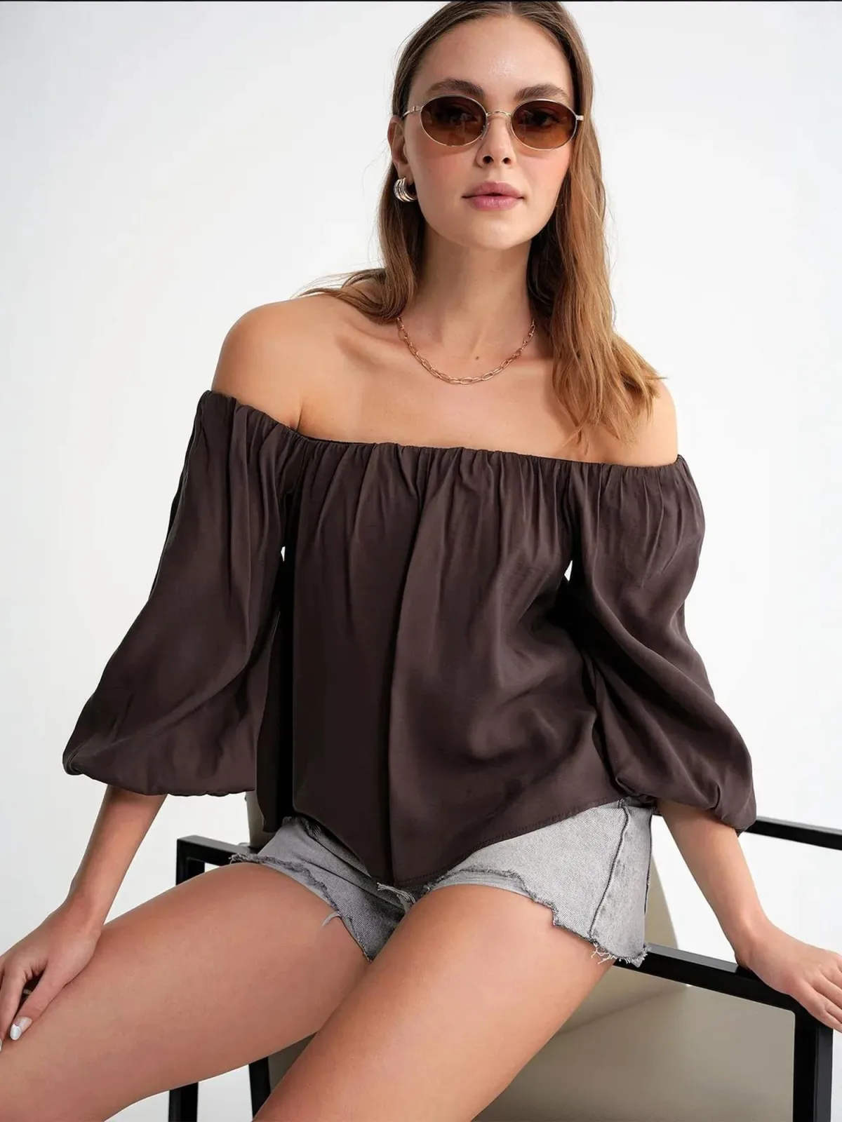 Blouse type: Blouseshirt; Design: Gevoerde zoom/rand; Motief: Effen; Kraag: Zonder kraag; Details: Gedrapeerd; Extra's: Op staal naden; Pasvorm: Losse pasvorm; Armlengte: Driekwart mouw; Lengte: Normale lengte