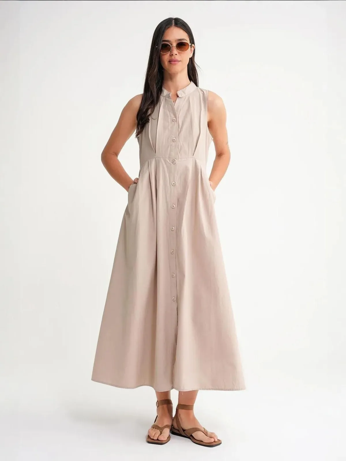 Design: Gevoerde zoom/rand, Knop placket, Zakken aan de zijkant; Type sluiting: Knoopsluiting; Materiaal: Katoen; Halstype: Opstaande kraag; Motief: Effen; Kraag: Opstaande kraag; Soort bandjes: Brede bandjes; Details: Plooien; Extra's: Op staal naden, Voelt zacht aan; Lengte: 7/8 lengte; Snit: Getailleerd; Pasvorm: Normale pasvorm; Armlengte: Mouwloos