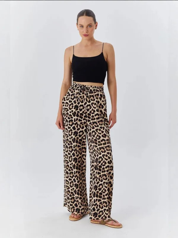 Design: Elastische taille/zoom; Materiaal: Viscose; Motief: Dierenprint; Extra's: All-over patroon; Lengte: Lang/maxi; Pasvorm: Wide leg; Taillehoogte: High waist