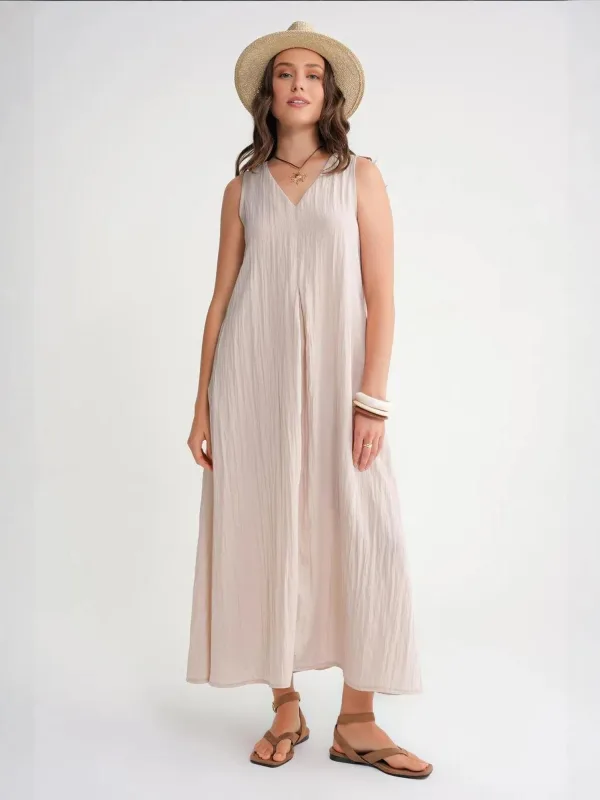 Design: Gevoerde zoom/rand; Materiaal: Viscose; Halstype: V-hals; Motief: Effen; Soort bandjes: Brede bandjes; Details: Plooien; Extra's: Op staal naden; Lengte: 7/8 lengte; Snit: Uitlopend; Pasvorm: Losse pasvorm; Armlengte: Mouwloos