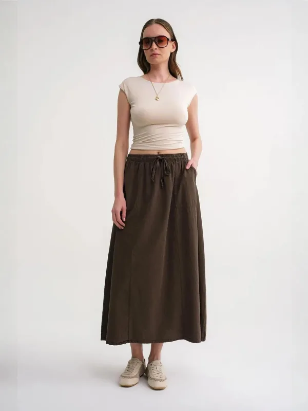 Design: A-lijn, Taille met trekkoord, Elastische taille/zoom, Zakken aan de zijkant; Materiaal: Jersey; Motief: Effen; Rokvorm: A-lijn rok; Details: Gedrapeerd; Extra's: Op staal naden; Lengte: 7/8 lengte; Pasvorm: Normale pasvorm