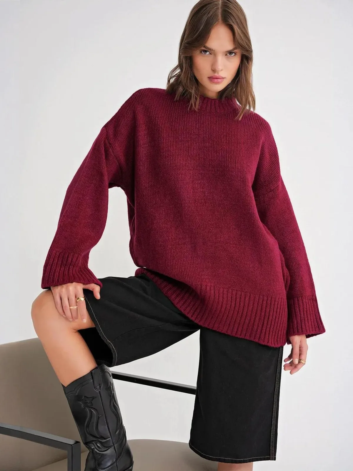 Design: Elastische inserts; Materiaal: Knitwear; Halstype: Ronde hals; Motief: Effen; Extra's: Op staal naden; Pasvorm: Losse pasvorm; Armlengte: Lange mouw; Lengte: Normale lengte