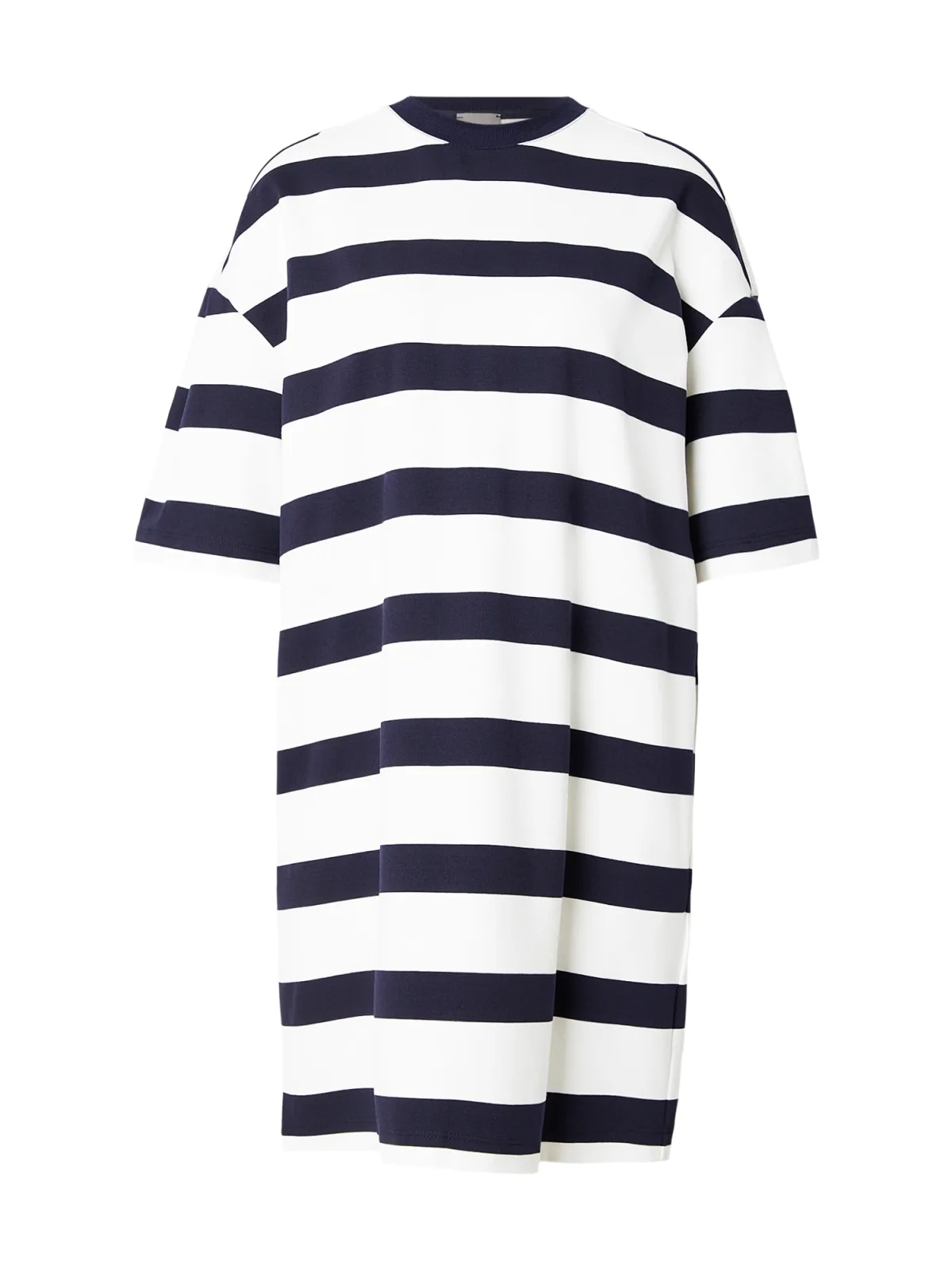 Design: Gevoerde zoom/rand, Geribbelde kraag, Overcut schouder, Zakken aan de zijkant; Materiaal: Jersey; Halstype: Ronde hals; Motief: Gestreept; Extra's: All-over patroon, Koele grip; Lengte: Kort/mini; Snit: Recht; Pasvorm: Losse pasvorm; Armlengte: Halve mouw