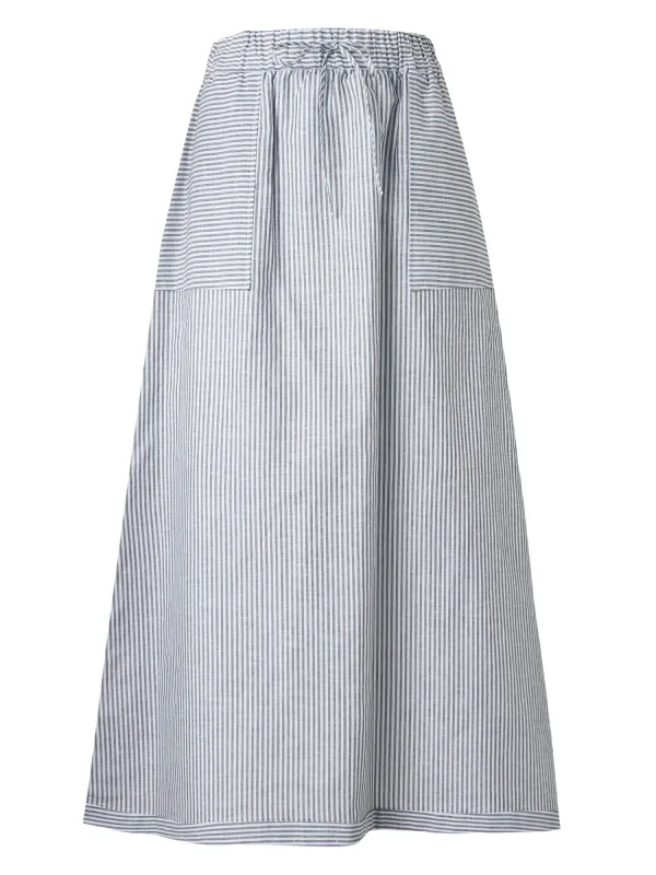 Design: Gevoerde zoom/rand, Taille met trekkoord, Zijdelingse inkepingen, Opgezette zakken; Materiaal: Linnen; Motief: Gestreept; Rokvorm: A-lijn rok; Details: Gedrapeerd; Extra's: All-over patroon, Lichte stof, Voelt zacht aan; Lengte: 3/4 lengte; Pasvorm: Normale pasvorm; Taillehoogte: High waist