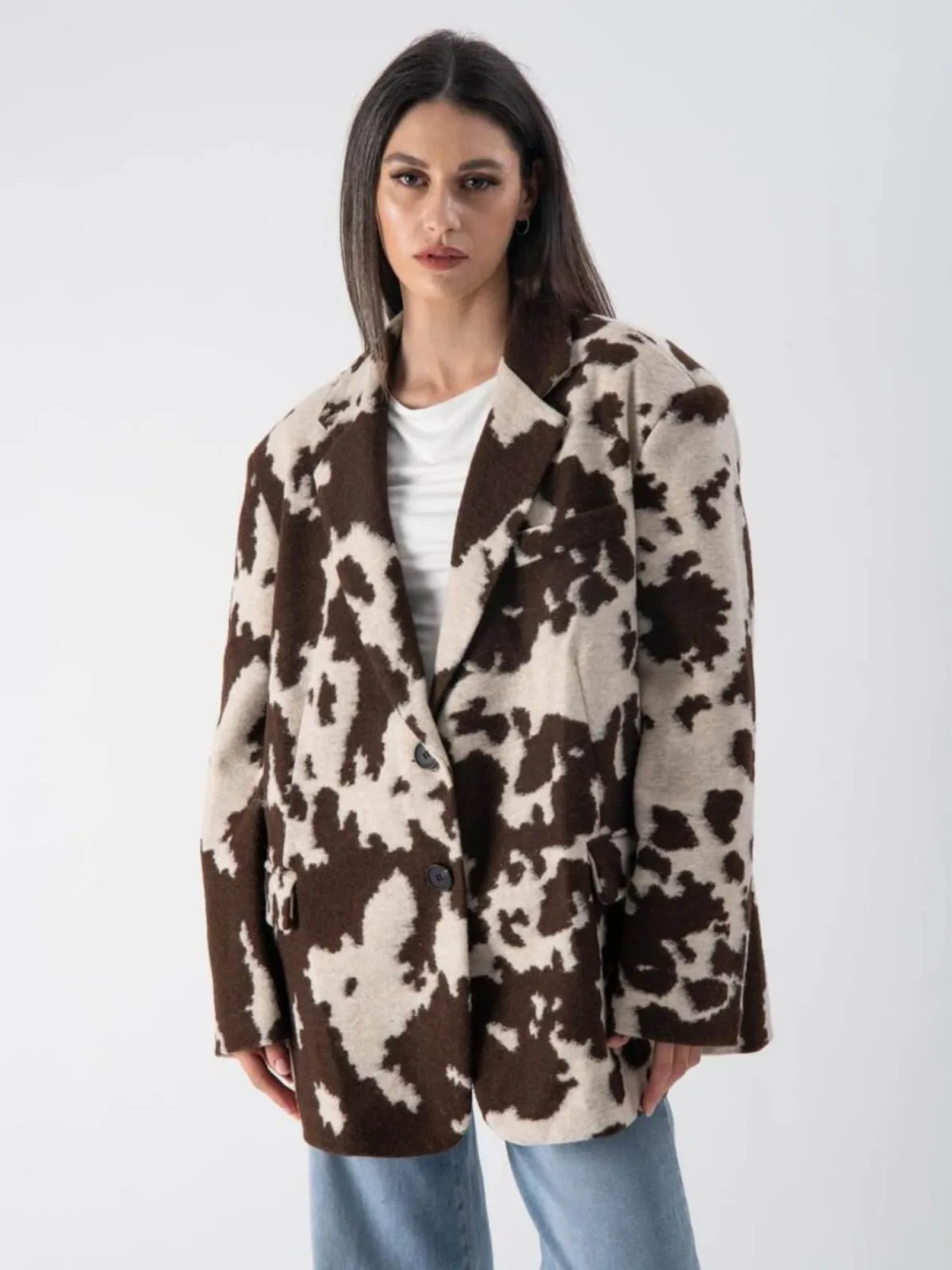 Voering: Gedeeltelijk gevoerd; Materiaal: Wol; Motief: Dierenprint; Pasvorm: Normale pasvorm; Armlengte: Lange mouw; Lengte: Normale lengte